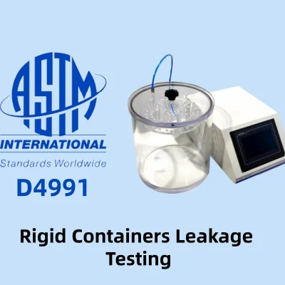 ASTM D4991 адыгрывае вырашальную ролю ў цаласнасць жорсткага кантэйнера Праверка з дапамогай візуальнага і націскавага метаду. Тэст заснаваны на кантраляваным стварэнні вакууму, пакуль кантэйнеры знаходзяцца ў празрыстым вадкасным асяроддзі, што дазваляе лёгка выявіць працёк.